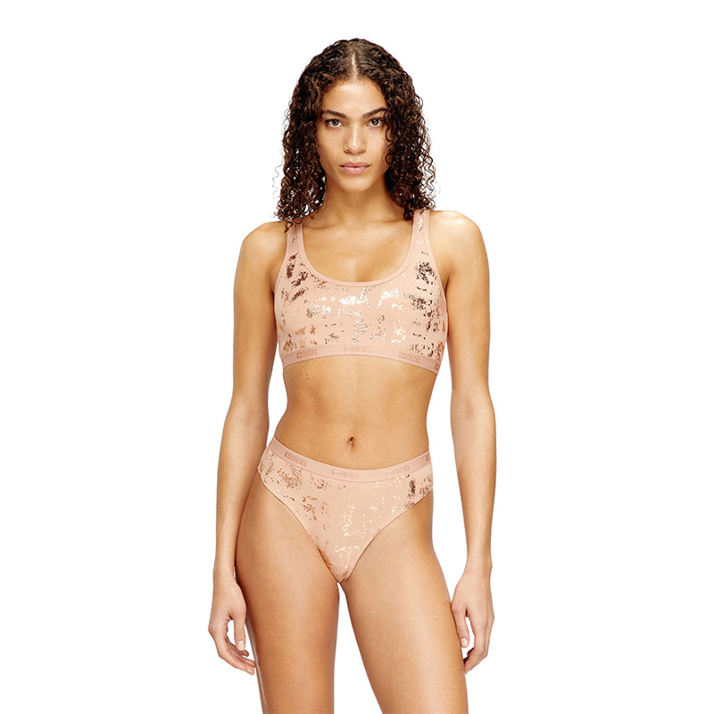 Diesel Women Stretch-cotton bralette with metallic print Nude A229410HNBB