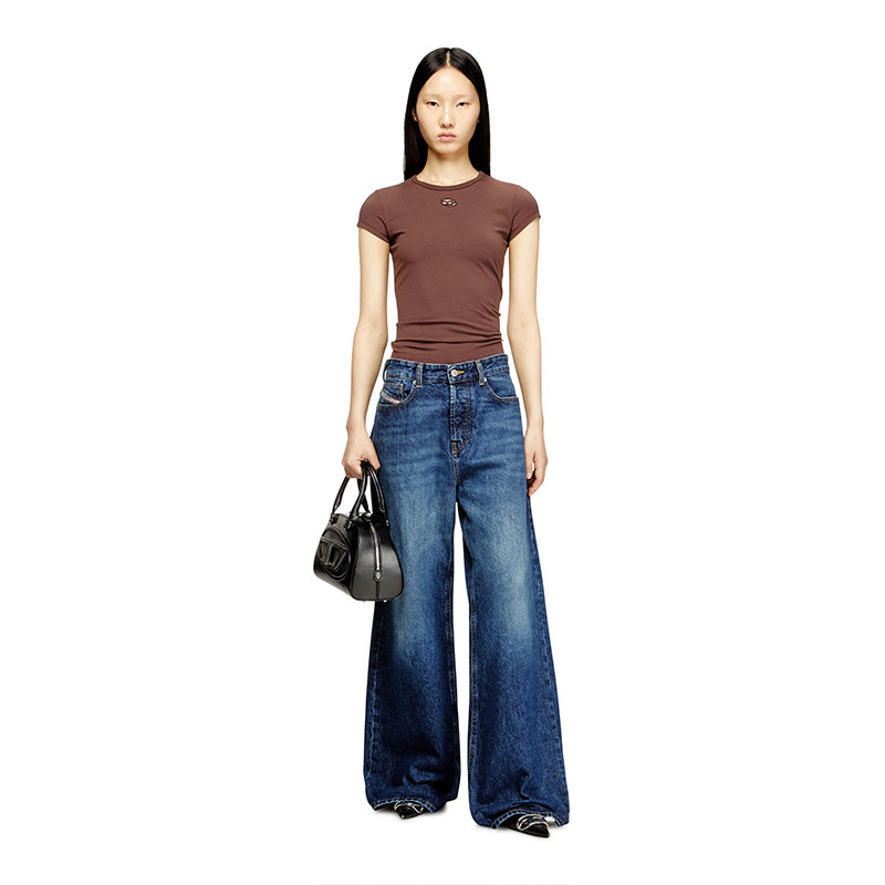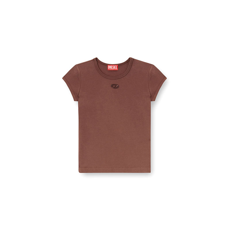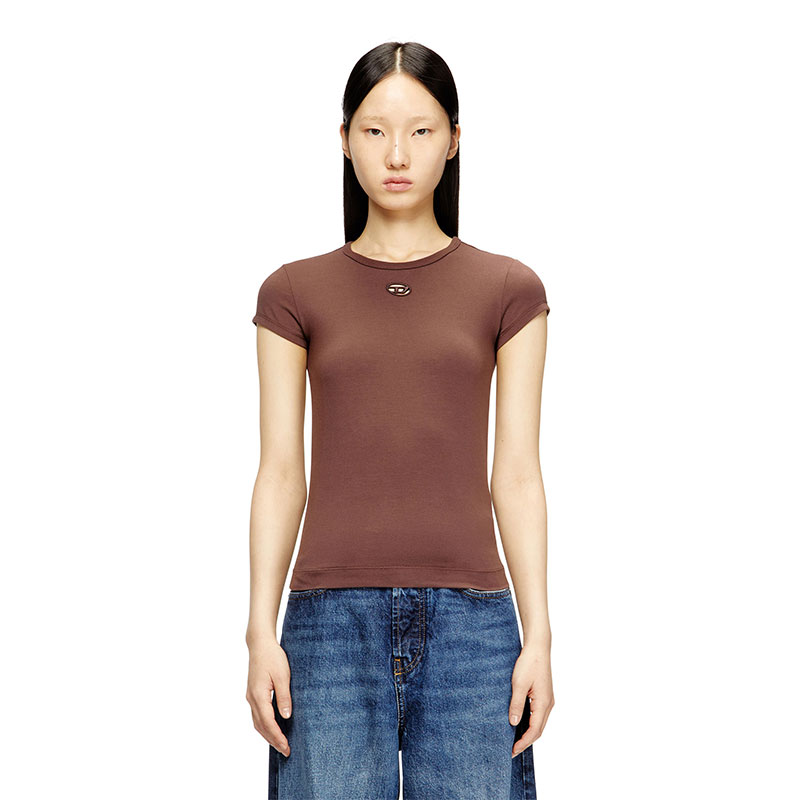 Diesel Women T-shirt with cut-out embroidered logo Brown A199120AFAA