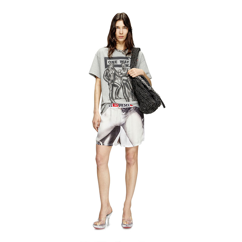 Diesel partners with the Tom of Finland Foundation on an annual Pride collaboration celebrating the LGBTQIA+ community. Part of the capsule, this unisex T-shirt is made from mélange organic-cotton jersey in a regular fit and digitally printed with homoerotic work by selected artists from the Foundation. Take a closer look at the herringbone tape on the back to see the inspiring message from the Foundation’s legendary namesake artist Tom of Finland.