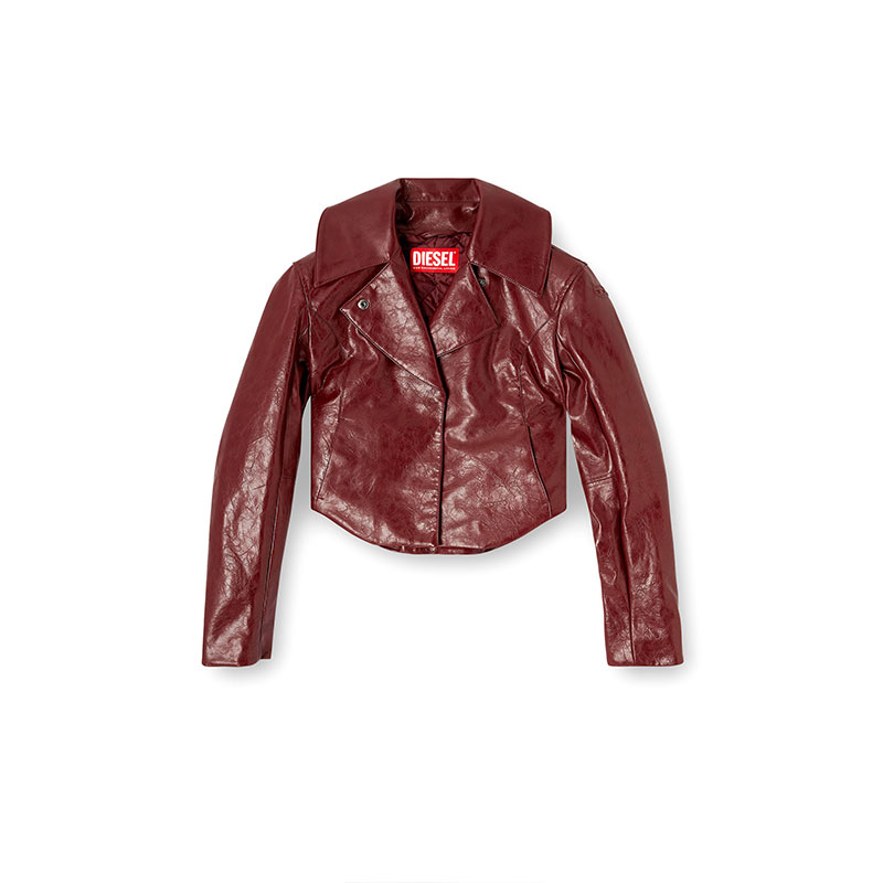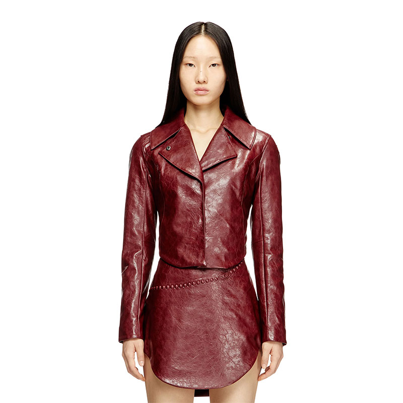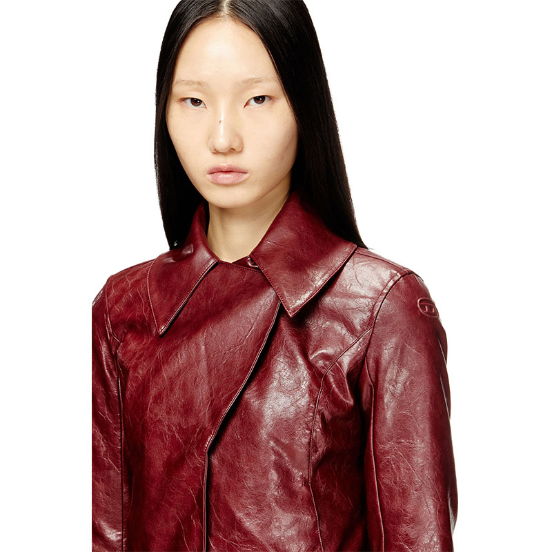 A subversion of tailoring, this women’s jacket is crafted from supple coated fabric with a lustrous shine and textured hammered finish. Wide notched lapels and a curved shirt-style hem define its slim silhouette, finished with a lightly padded quilted lining. This style fastens with hidden snaps and features an embossed Oval D logo on the sleeve.