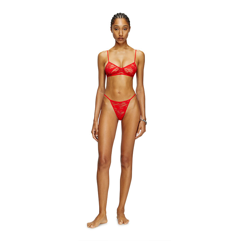 This women's sheer thong is cut from stretchy jacquard lace with a utilitarian camouflage motif. A tonal Oval D logo embellishes the front.