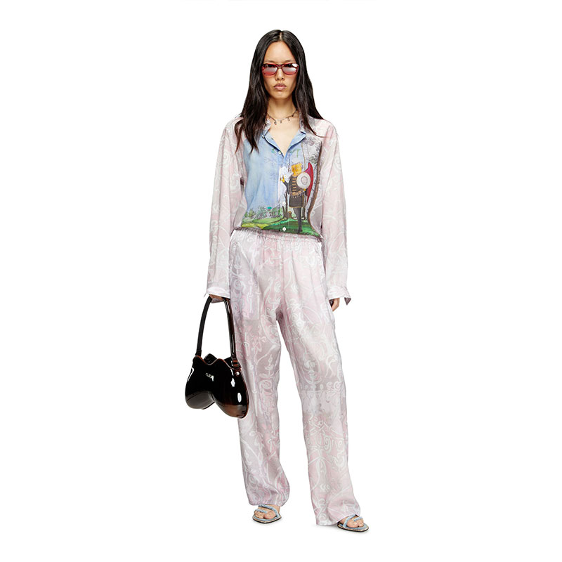 Diesel Women Track pants with medieval print Pink A195660AJFW