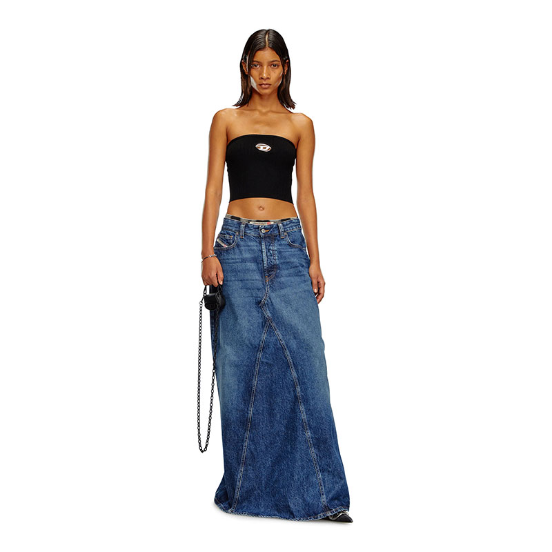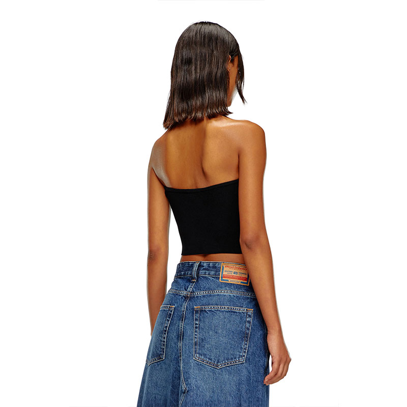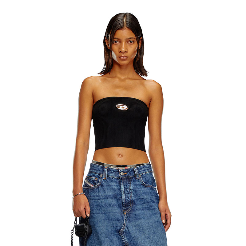 This women's tube top features a metal Oval D plaque inserted into the chest cut-out to reveal a flash of skin. The ribbed stretch-jersey construction ensures it's soft and snug-fitting.