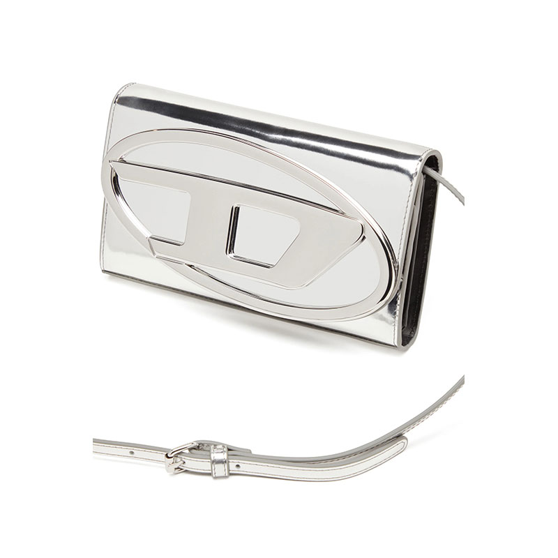 This maxi wallet doubles as a minibag thanks to the detachable strap. Embellished with the signature Oval D plaque that identifies the iconic 1DR bag, it's crafted from mirrored leather.