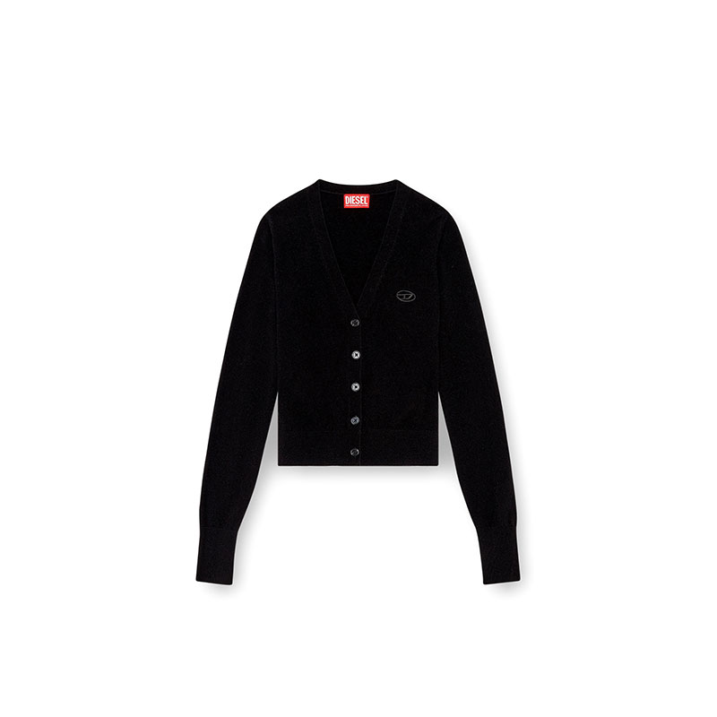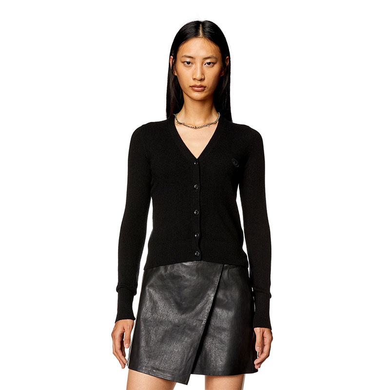This women's V-neck cardigan is knitted from a sumptuous blend of responsibly sourced wool and recycled cashmere. Designed for a close fit, it fastens with tonal buttons and has a cut-out and embroidered Oval D revealing slivers of skin at the chest.