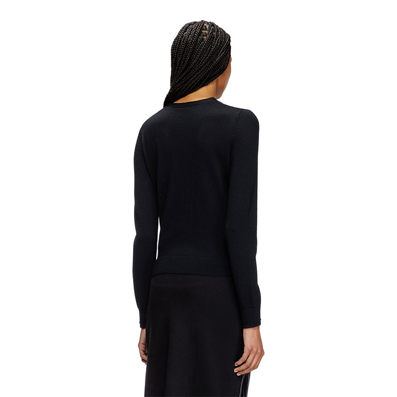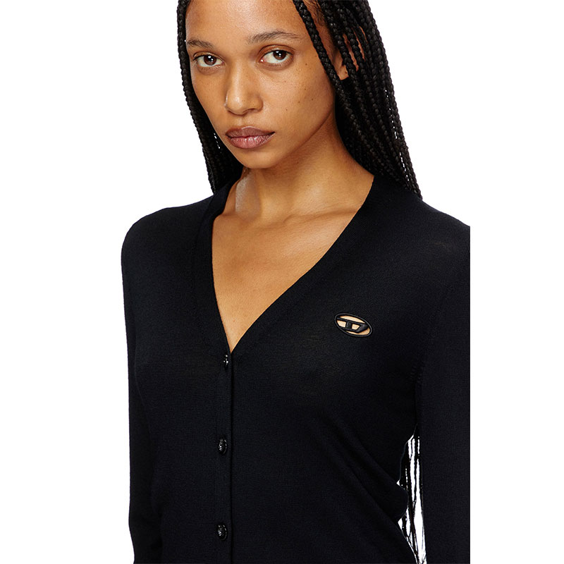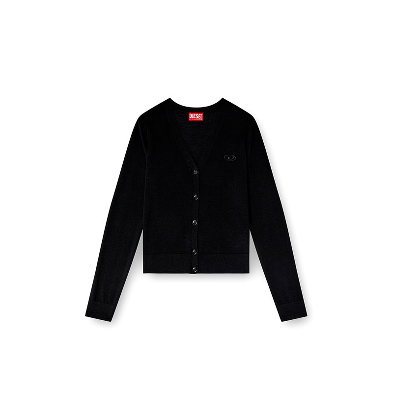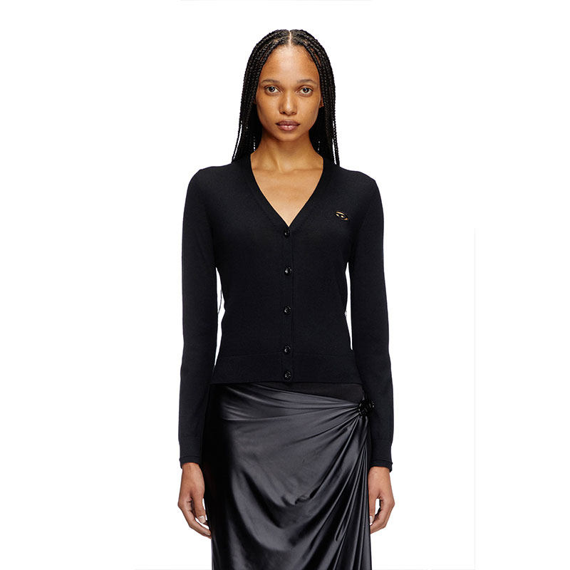 Women's cardigan spun from responsibly sourced wool. Shaped for a regular fit, this classic fine-gauge knit is elevated with subtle yet distinctive details. The cut-out embroidered Oval D logo allows for a flash of skin or underpinnings, while ridged-effect ottoman stitches give the cuffs a touch of dimension.