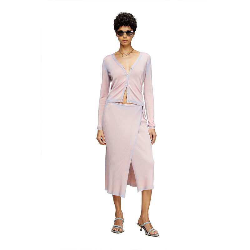 This ribbed cotton wrap skirt is plated with viscose for a fluid, stretchy feel. A double-dyed treatment gives it a nuanced look: pink with hints of blue along the edges. Cut in a regular fit and finished with a metal Oval D on the side.