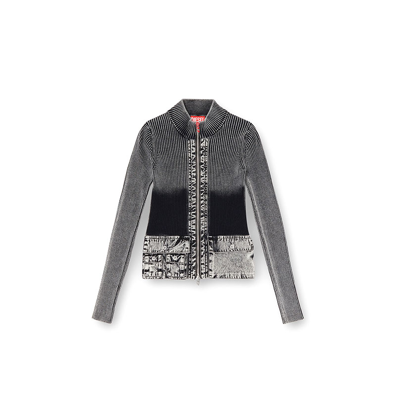 Diesel Women Zip-up cardigan with denim cargo pockets Dark grey A168950QMAN