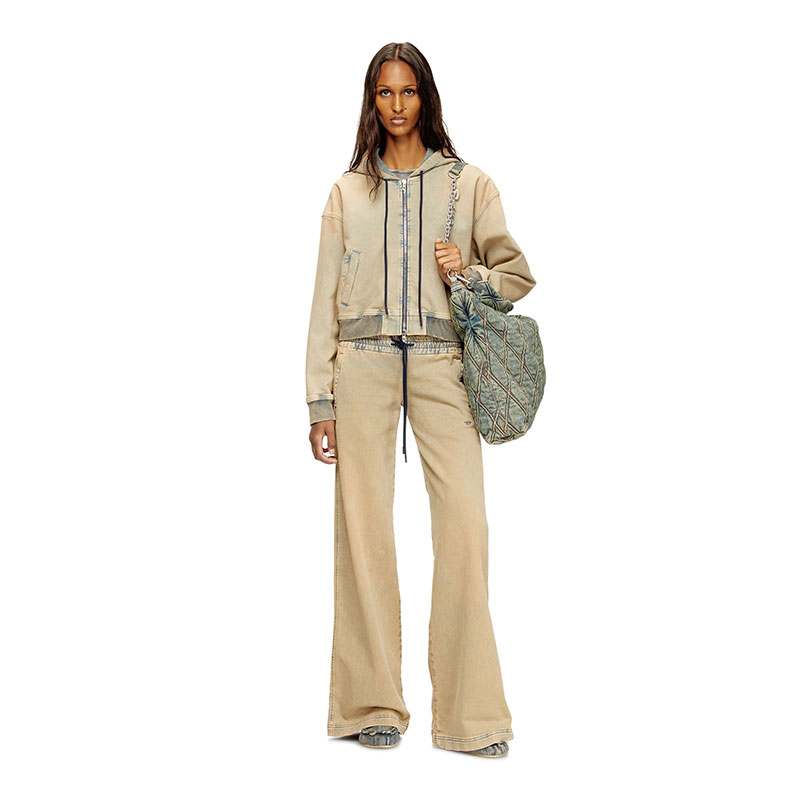 An example of Diesel's disruptive and unique DNA, this coloured wash is detailed with laser-drawn whiskers to create the classic used look, while a stone and eco marble wash refine its character. A dirty effect, achieved with natural earths and pigment dye, adds depth and dimension.