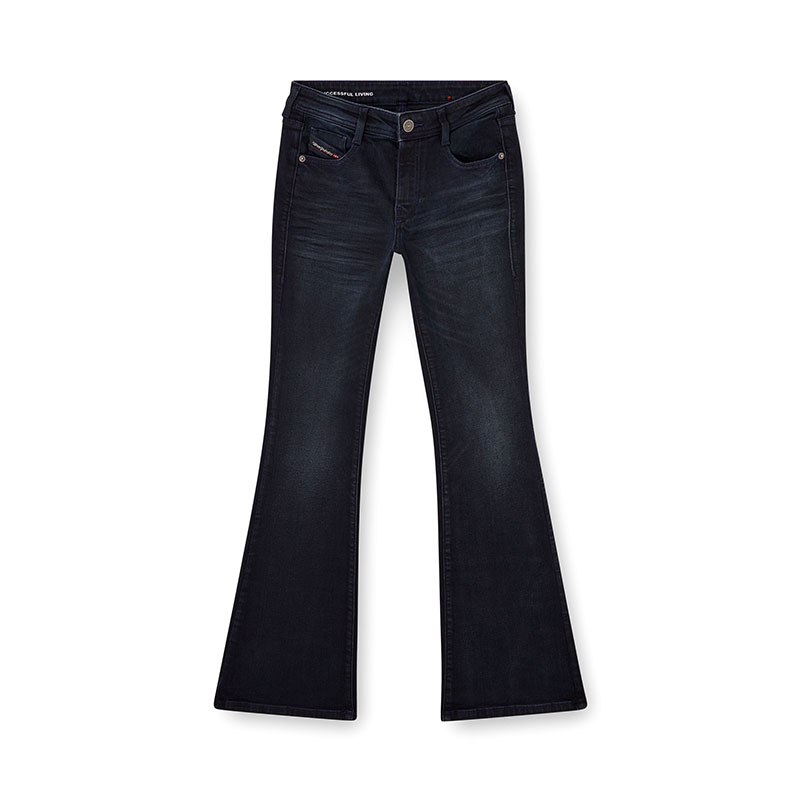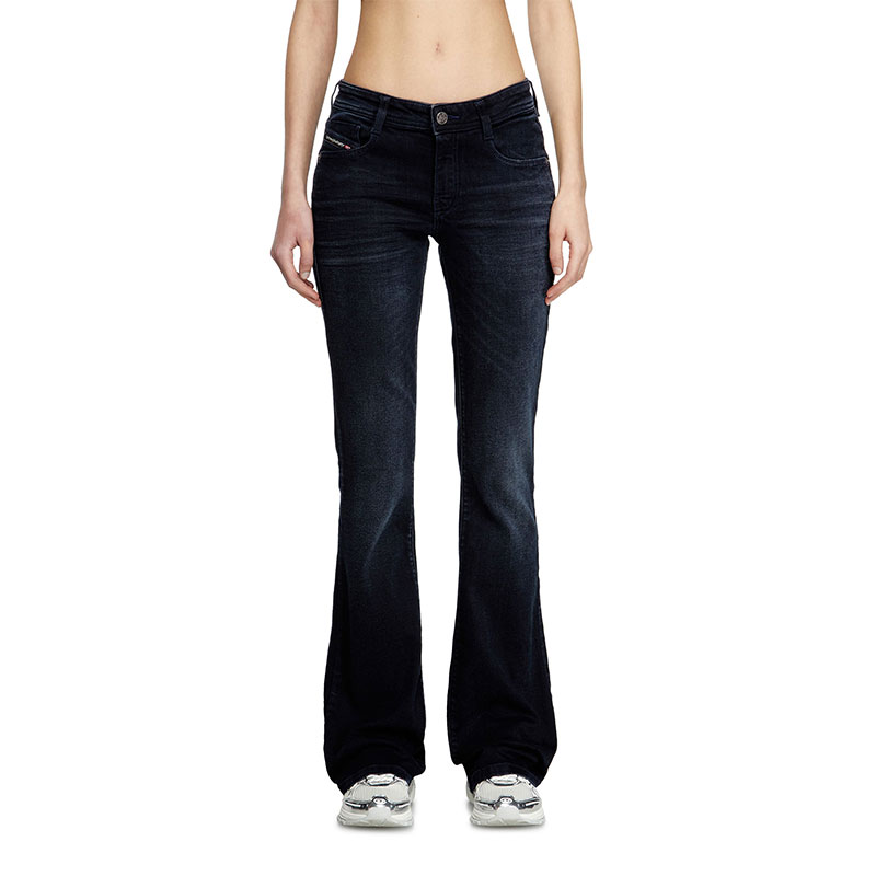Bootcut fit with a low waist and slim leg. A versatile classic, this silhouette offers higher back coverage and hugs the body from the hips to the knees, elongating the leg.