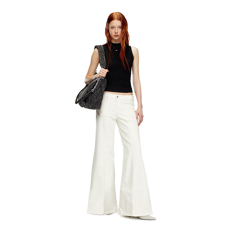 Flared style with a regular waist, inspired by the dance club looks from the '70s. The front pockets nod to the iconic "Hush" Diesel jean.