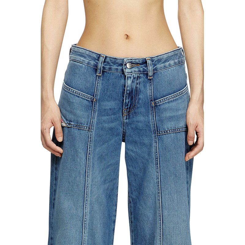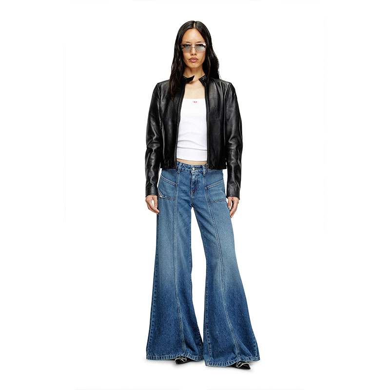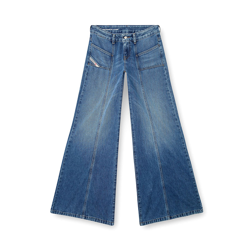 Flared style with a regular waist, inspired by the dance club looks from the '70s. The front pockets nod to the iconic "Hush" Diesel jean.