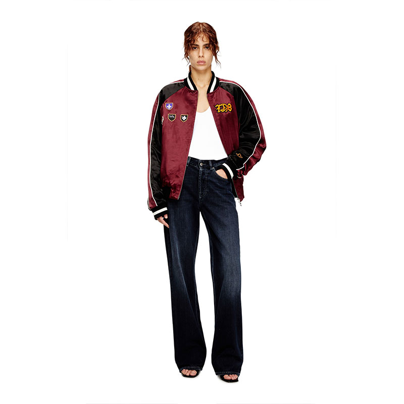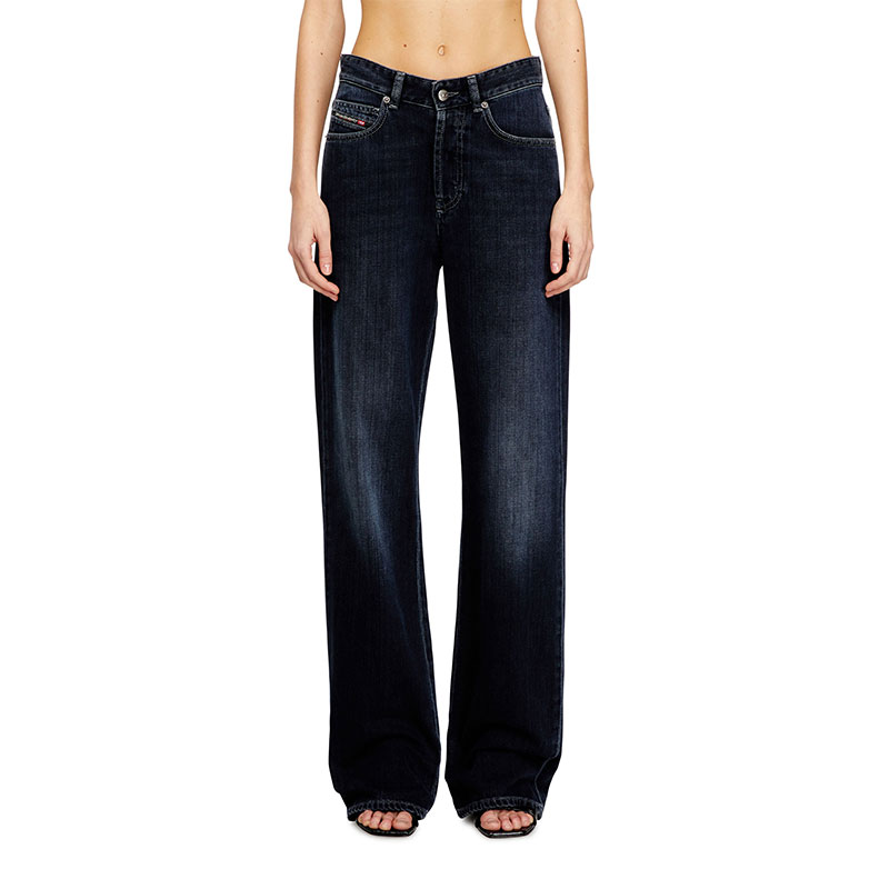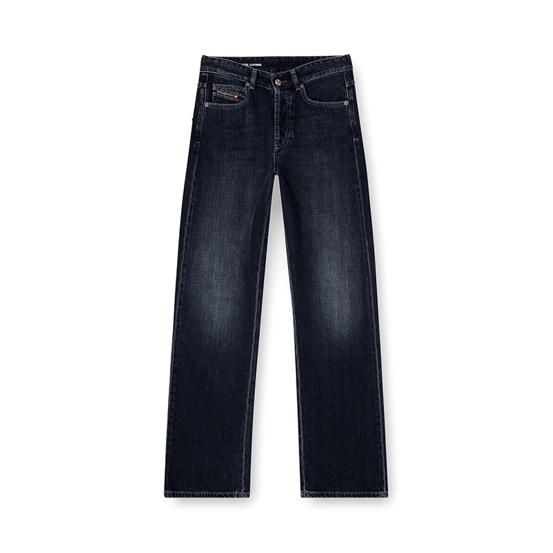 Regular fit with a straight leg. The waistband sits high on the waist and is designed to create a V-shaped front, tracing a feminine yet comfortable silhouette that embodies classic elegance. Fastened with a button fly.