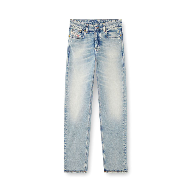Made with partially recycled cotton, this comfort denim is a DNA piece. It features a light blue wash with a subtle dirt effect.