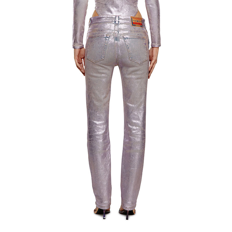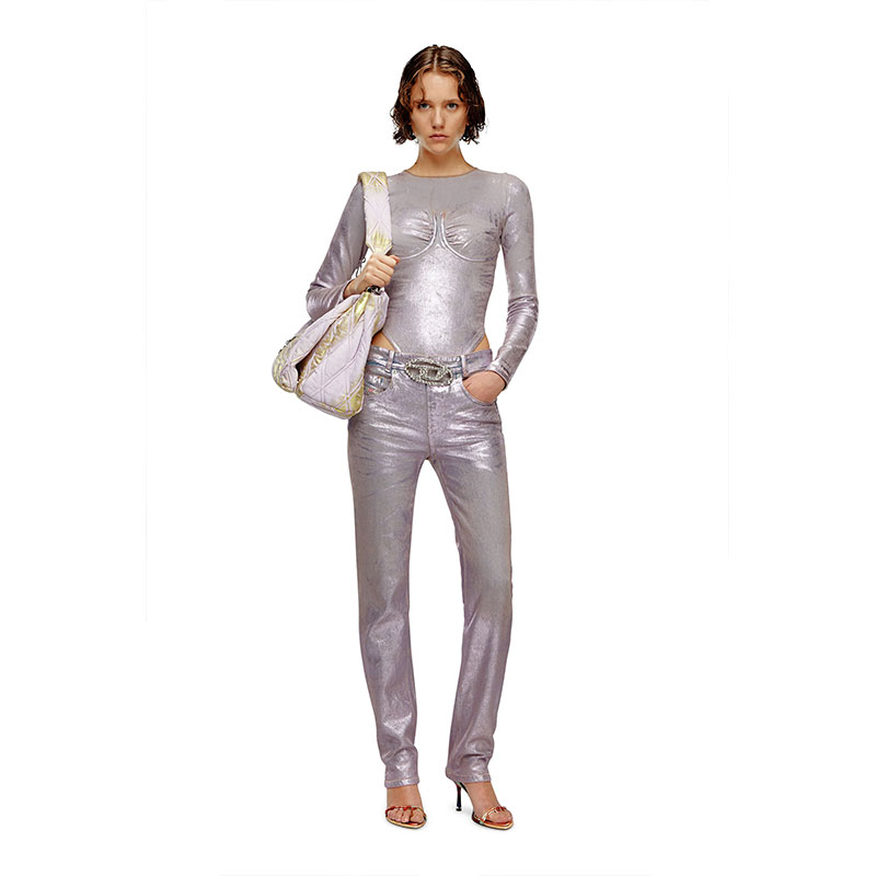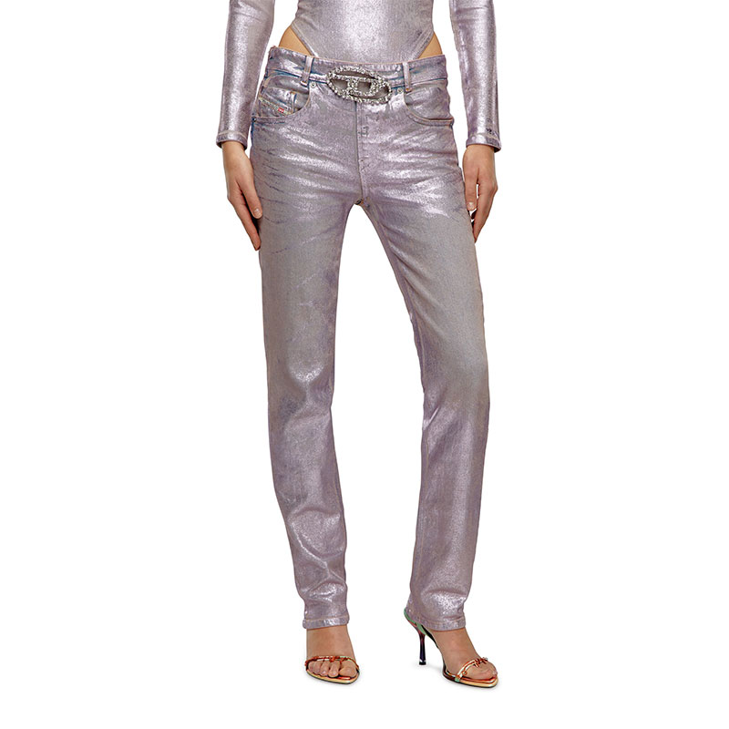 Slim style with a regular, shaped waist and straight leg. This contemporary silhouette is easy to wear and channels an authentic attitude. The waistband is inlaid with a sparkling metal Oval D logo, entirely covered in crystals and finished with skin-baring cut-outs.