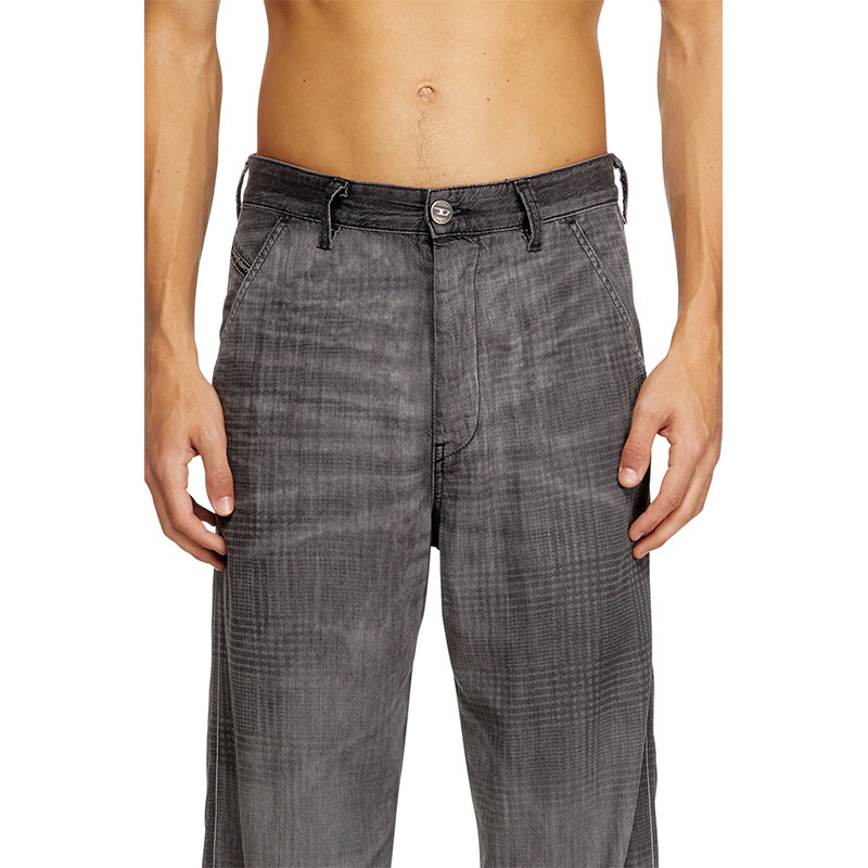 Made from a blend of organic cotton and TENCELLyocell, this fix denim fabric is smooth and fluid. The grey wash combines a traditional Prince of Wales pattern with carefully designed whiskers where the garment naturally folds when worn. A final spray technique intensifies the tonal contrasts.