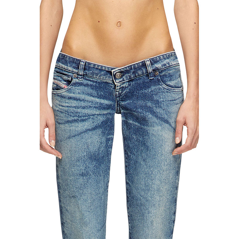 Crafted from a slightly flexible cotton and hemp blend, this medium blue denim showcases an iconic DNA treatment. Defined whiskers at the waistband give this Runway Show style a lived-in character that's rooted in Diesel's heritage.