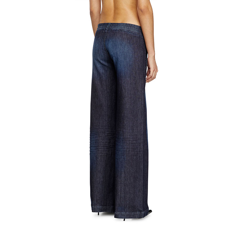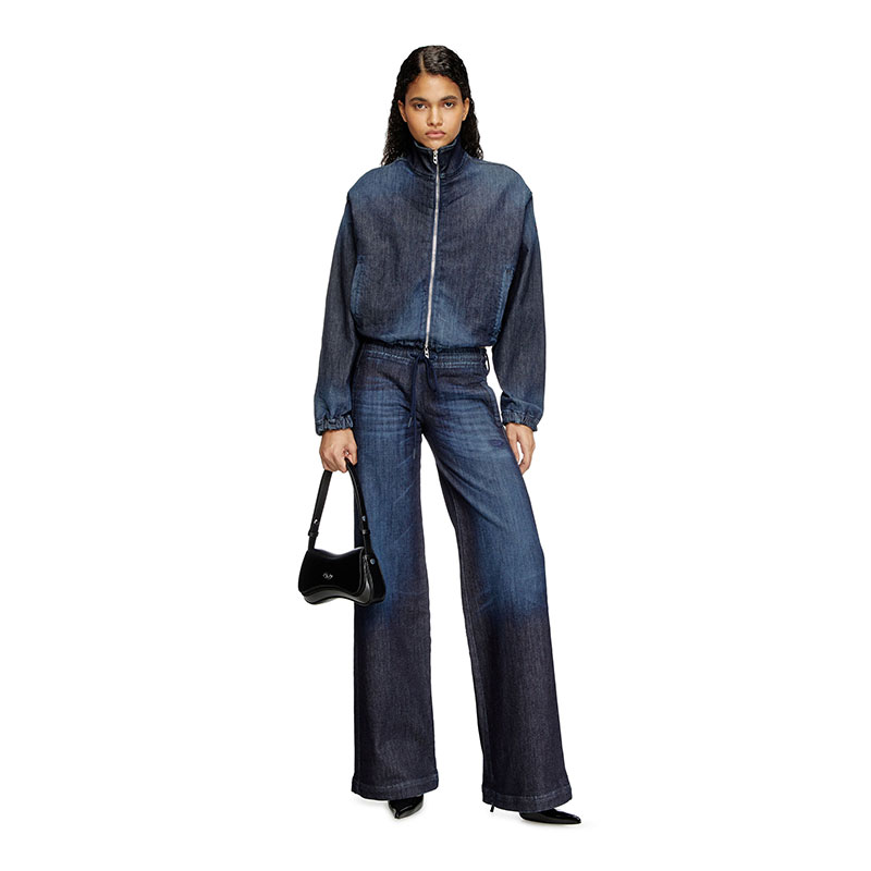 This wash features a clean finish in a dark shade of blue that veers towards black. The fabric is made using regenerative cotton.