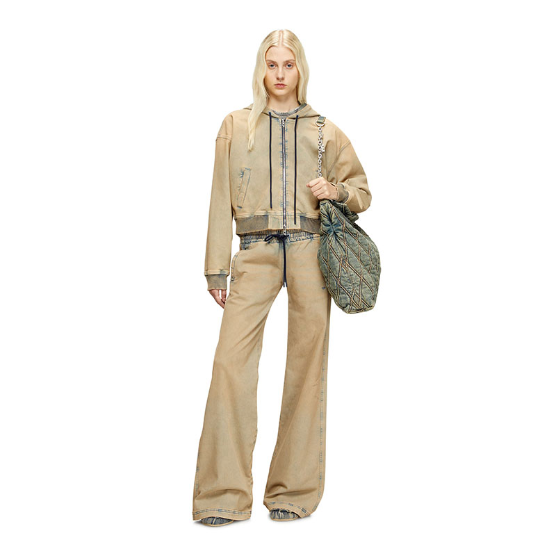An example of Diesel's disruptive and unique DNA, this coloured wash is detailed with laser-drawn whiskers to create the classic used look, while a stone and eco marble wash refine its character. A dirty effect, achieved with natural earths and pigment dye, adds depth and dimension.