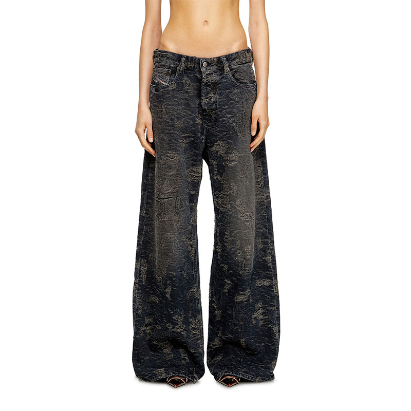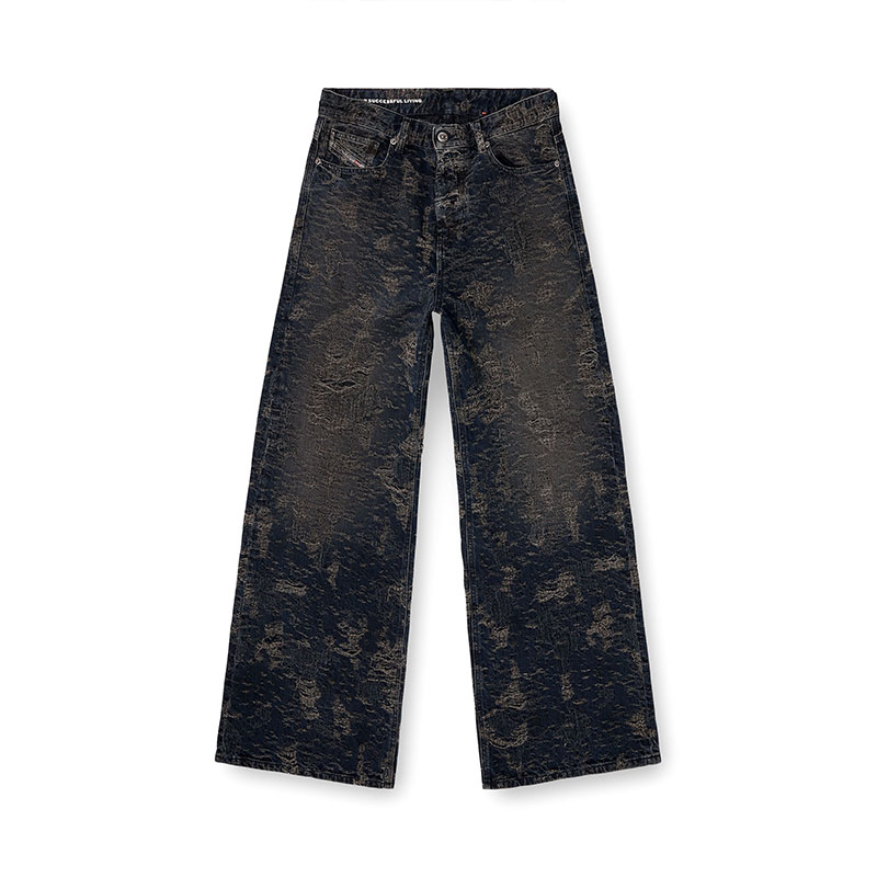 Crafted using organic cotton, this statement wash in shades of blue, black and grey channels Diesel's raw and experimental DNA. The jacquard-weave fabric is woven with floating threads for a raw, broken look that's totally intentional.