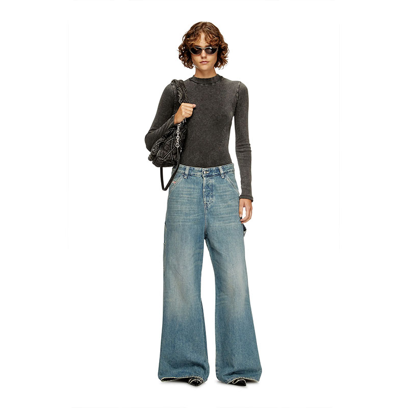 Relaxed fit with a low waist and low crotch, and extra-long wide leg. The loosest of our denim silhouettes, cut to make a drapey, oversized statement. Button fly.