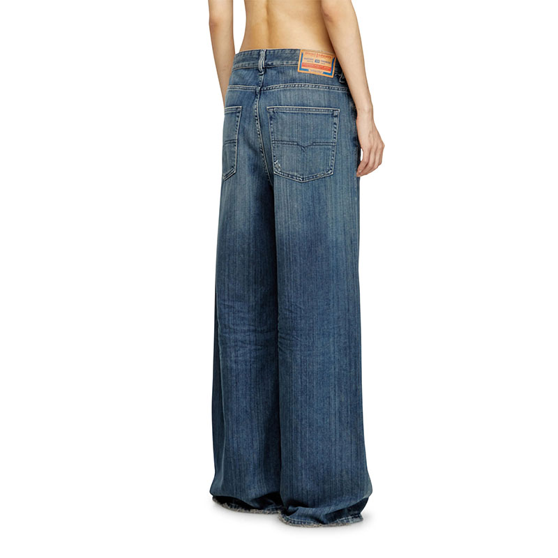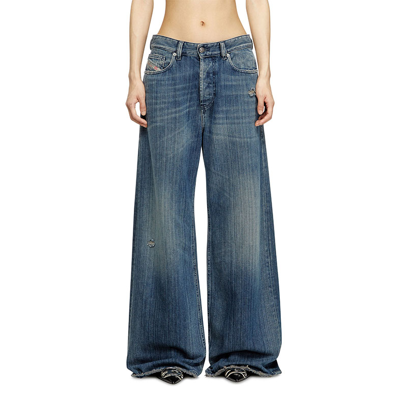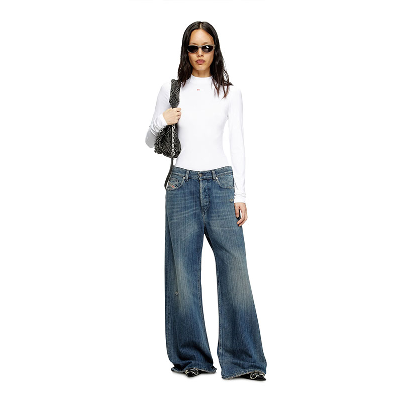 Relaxed fit with a low waist and low crotch, and extra-long wide leg. The loosest of our denim silhouettes, cut to make a drapey, oversized statement. Button fly.