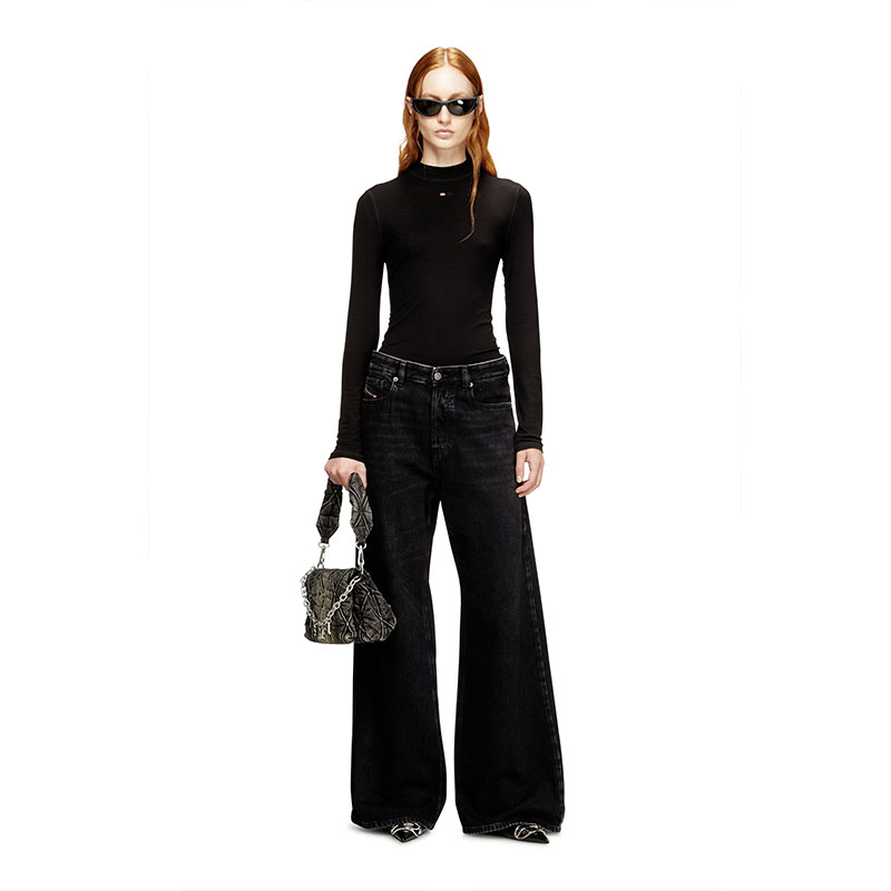 Made from fix denim with a percentage of regenerative cotton and a clean black finish. Part of Diesel's DNA selection of iconic and essential washes.