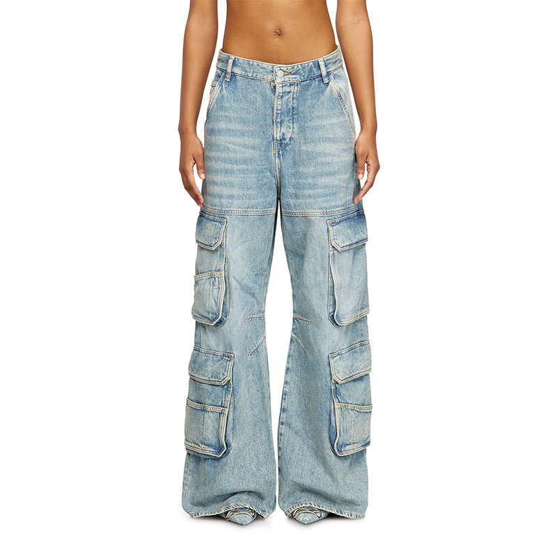 Relaxed fit with a low waist and low crotch, and extra-long wide leg. The loose, drapey silhouette is amplified by oversize cargo pockets. Button fly.