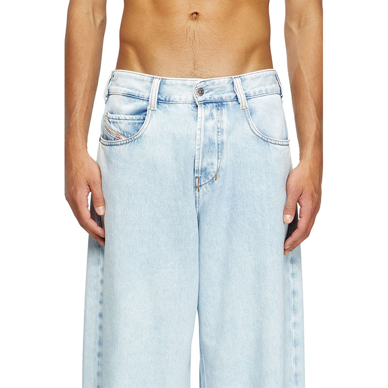 Crafted from fix denim using partially recycled cotton. The light blue, bleach-effect wash has a clean finish and is part of Diesel's iconic DNA selection.