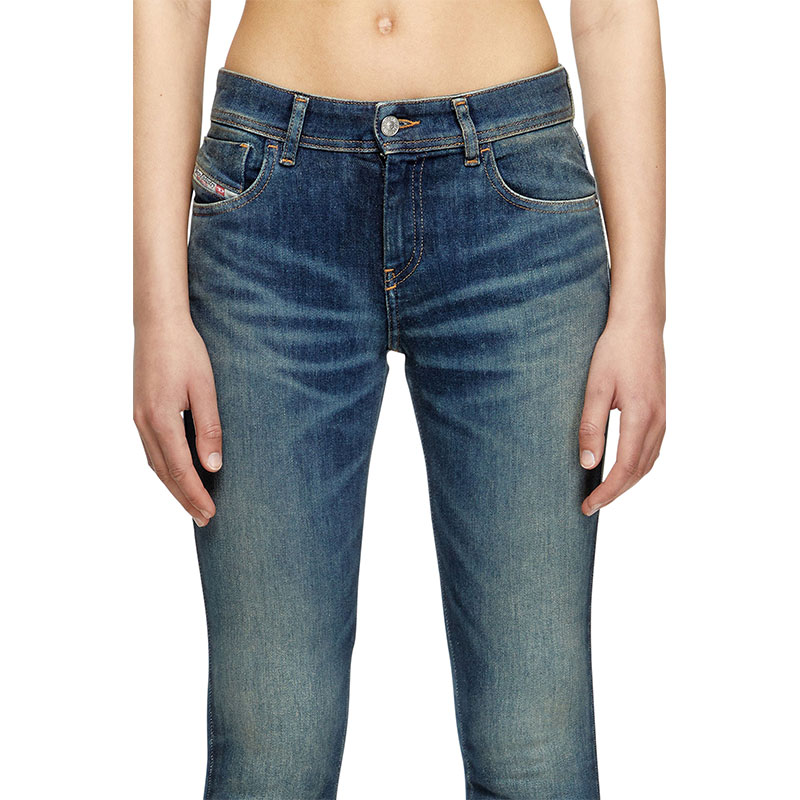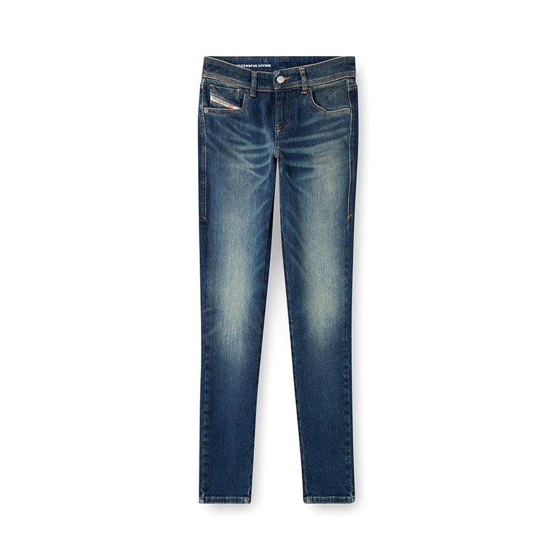 Crafted using organic cotton, this super-stretch denim is part of Diesel's DNA selection of essential washes. The medium blue hue is lightly treated to create whiskers and shaded effects that make the garment look naturally used.