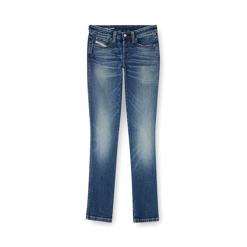 This garment features a medium blue wash, made from comfort denim in partially recycled cotton. Part of Diesel's DNA selection, it channels an authentic, subtly used look.