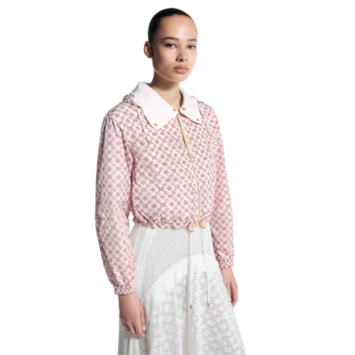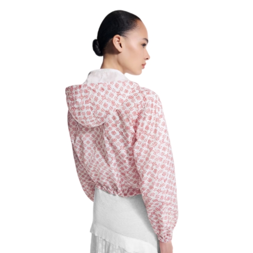 This parka is refreshed for the season with a vibrant allover Monogram motif in a graphic 3D-effect print. It is cut from lightweight nylon in a boxy cropped shape with an ample hood, elasticated cuffs and a drawstring waistline for a classic sporty look, while a leather fringe pull adds a contemporary flourish to the front zipper.