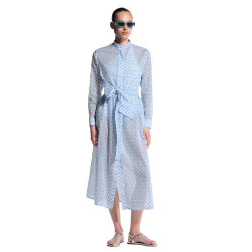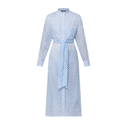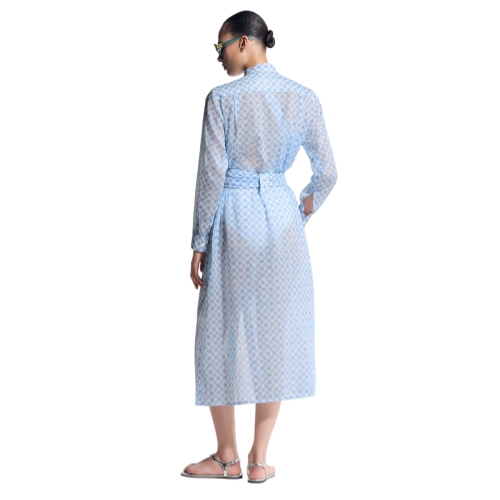 This shirt dress is cut with clean lines in an elegant long-sleeved, full-length silhouette from airy cotton in a sheer finish with the iconic Monogram motif featuring as an upbeat allover print in a 3D effect. A breezy knotted belt adds definition to the waistline, while a standing collar and patch pocket introduce a structured feel.