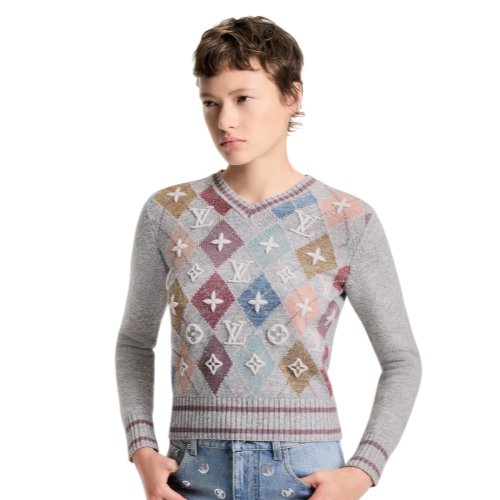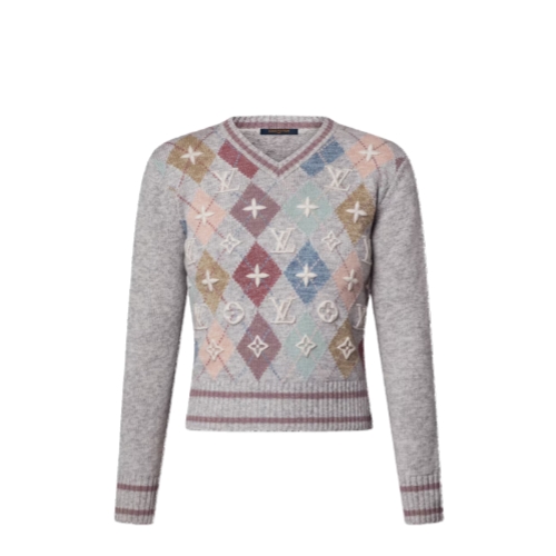 Playful touches refresh this classic pullover for the season. Spun from a warm cashmere knit, the front of the body is highlighted with a colorful argyle motif with the iconic Monogram embroidered over the top in a subtle 3D finish, while the V-neckline, cuffs and waist are finished with sporty striped ribbing.