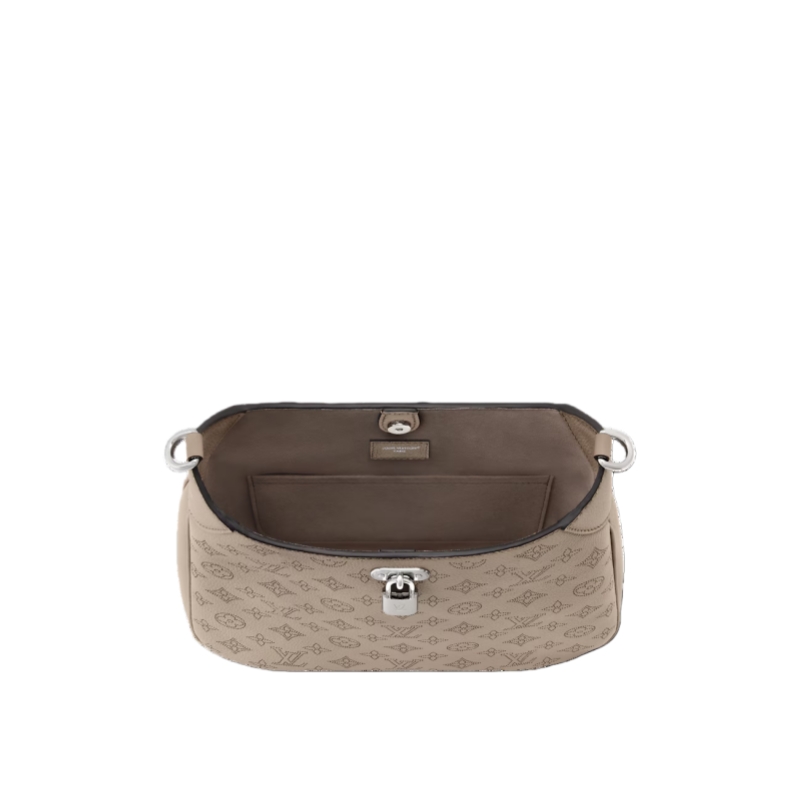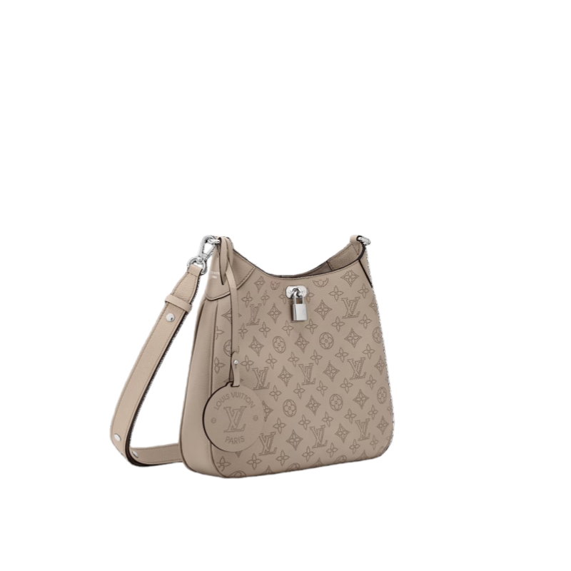 The All Around MM is a sophisticated everyday style. It is crafted from signature Mahina leather patterned with Monogram perforations, and is elevated with gold-toned hardware, including a decorative padlock that elevates the magnetic closure. The versatile design also features an LV leather charm and can be worn cross-body or over one shoulder.