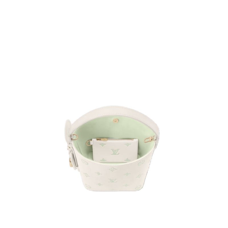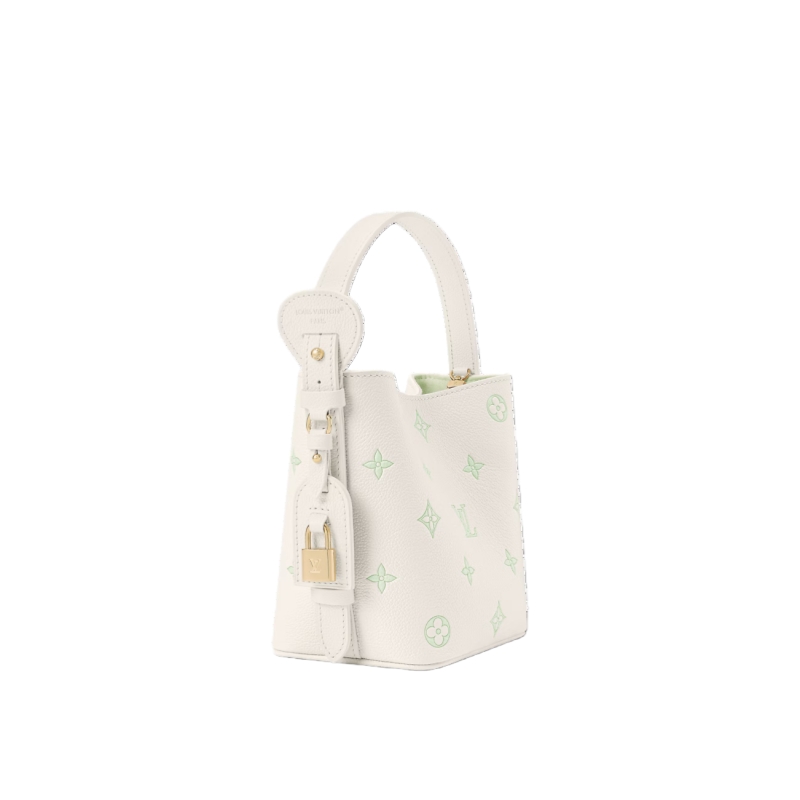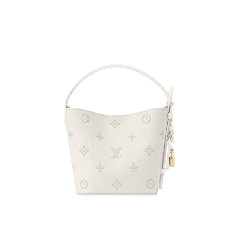 Defined by its playful Milky White and Green color palette, this edition of the All In BB makes a subtle everyday statement. It is crafted from iconic Monogram Empreinte leather with light gold-toned hardware that lends a sleek finish. The decorative name tag and padlock are signatures of the House, paying tribute to archival Louis Vuitton luggage. It can be styled various ways and is sized to fit the essentials.
