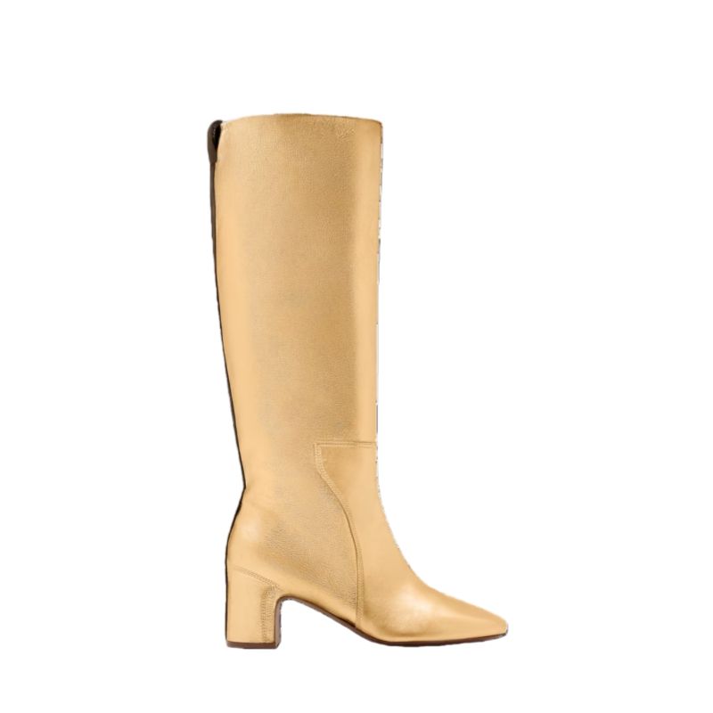 Striking in metallic calf leather, the Avalon high boot was inspired by Arthurian legend and designed for striding out. It is characterized by its square toe, block heel and tubular shape, which allows it to be pulled on with ease. It is signed at the back with a strap and loop in Monogram canvas.