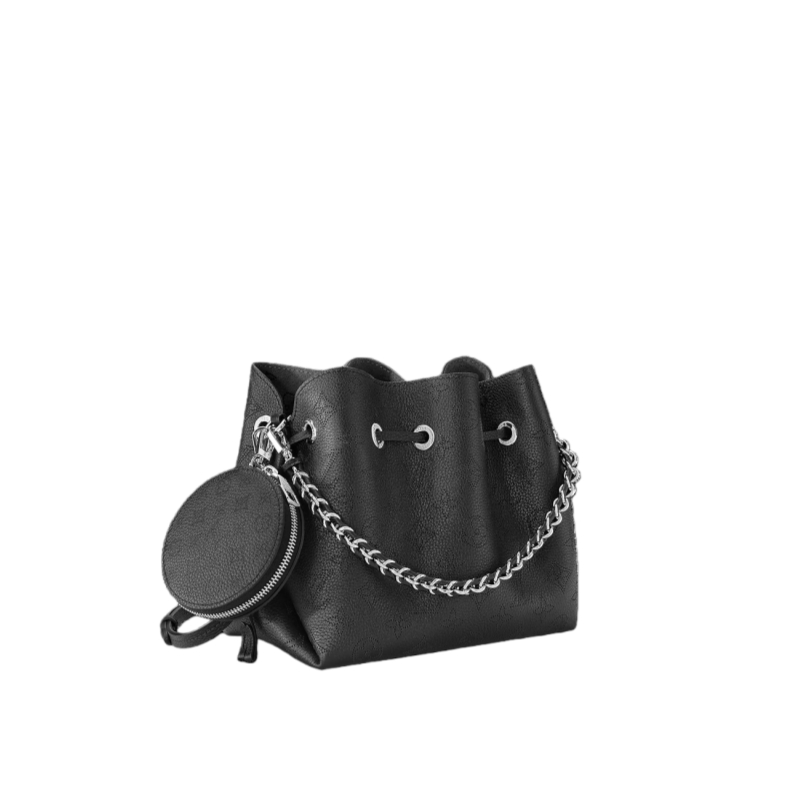 Louis Vuitton unveils the Bella bucket bag in Mahina calf leather with its perforated Monogram pattern. The bag’s small size and the attached round coin purse, featuring a miniature version of the perforated Monogram motif on one side, make it modern, desirable and trendy. The sophisticated leather and metal mixed handle associated with a removable leather strap bring versatility.