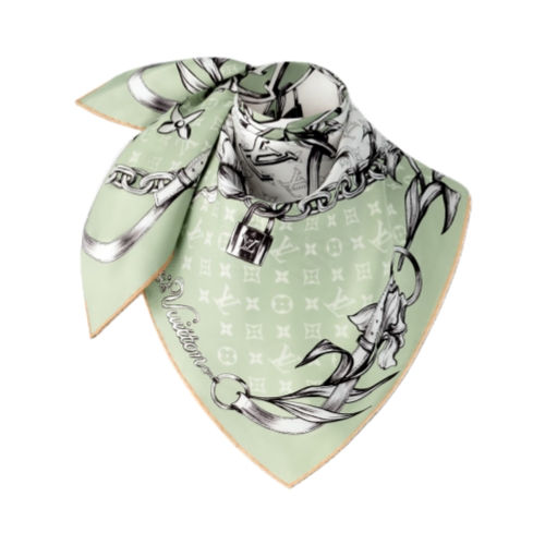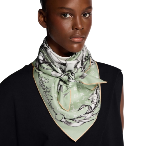 Inspired by the romantic spirit of floral tattoos, the Blooming Monogram square features a bold yet refined design printed on sumptuous silk. Delicate images of flowers and butterflies surround a large Monogram Flower, mixed with trunk-style straps, padlocks and luggage tags that recall the House’s travel heritage. The Monogram pattern and LV Initials add an extra signature touch.