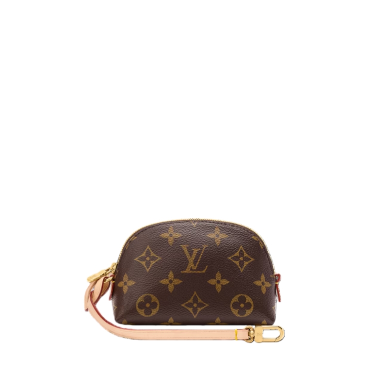 Inspired by the Cosmetic family, this small purse is designed as an accessory to stow inside a bag, or attached as a useful charm. Showcasing the House’s iconic Monogram pattern, it is crafted from canvas and trimmed with contrasting leather. Made with a protective lining, it is perfect for storing petite essentials, like earphones, keys and a favorite lipstick. It is finished with gold-toned hardware, including a key hook.