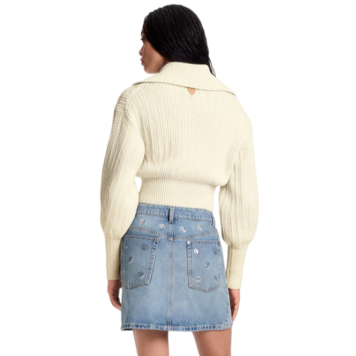 This zip-up jacket is chic and cozy in a wool-cashmere blend knit spun in a sophisticated braided ribbed finish, while the exaggerated collar, cuffs and waistline are highlighted with plain ribbing for a textural contrast. It is crafted in a cropped shape with voluminous balloon sleeves for an enveloping fit. An LV Circle patch signs the back.