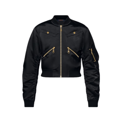 This bomber jacket is revisited in a chic cropped shape with ruching along the sleeves for added texture and volume, while multiple fastened pockets introduce a utility feel. It is made from lustrous nylon satin with ribbed hems for a classic sporty look, complete with a subtle tone-on-tone Monogram insert on the back.