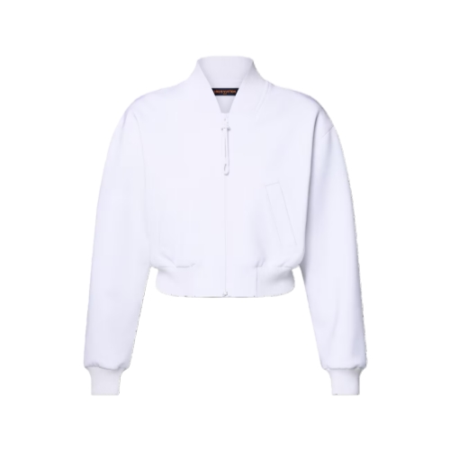 This bomber jacket is reworked with contemporary codes for a clean, sporty look. It is cut in a cropped shape from the House’s iconic technical jersey, while the collar, cuffs and waistline are finished with exaggerated ribbing for a trim fit. The front is fastened with a coated zipper, and two side pockets complete the look.
