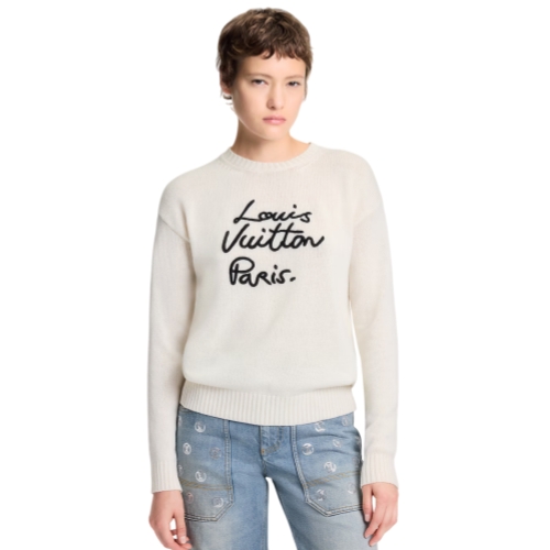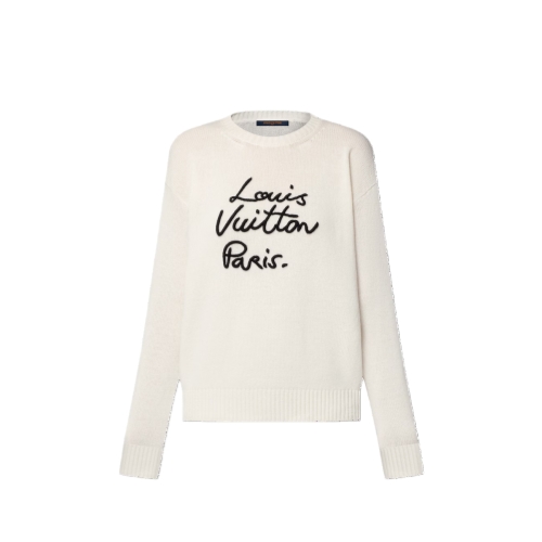 This classic pullover is elevated for everyday styling in a cozy cashmere knit. It is spun in a regular fit with a crew neckline and finished with chunky ribbed hems for an elegant finish. An embroidered Louis Vuitton Paris signature in cursive handwriting adds a spirited House touch to the chest.