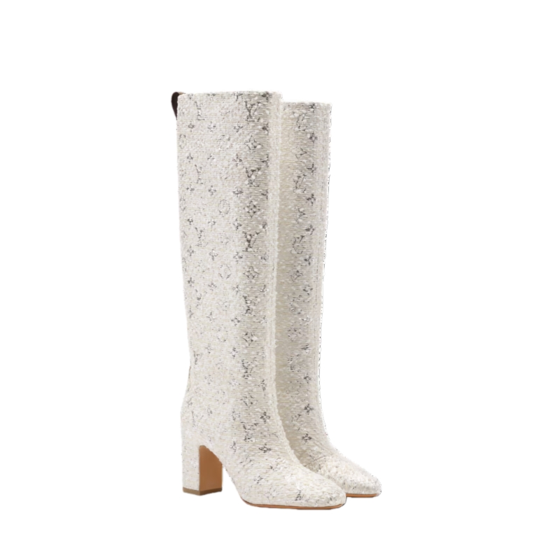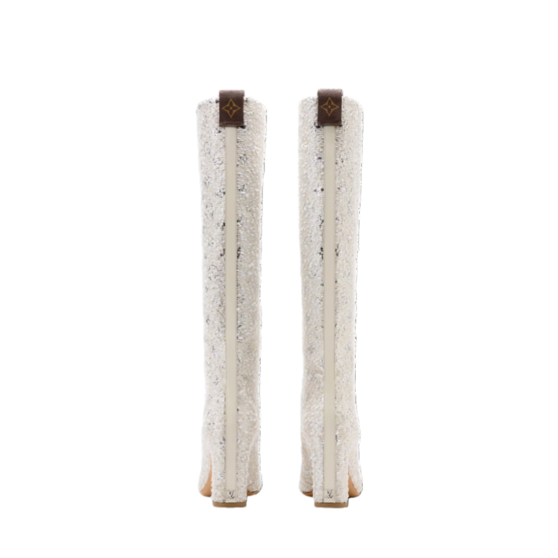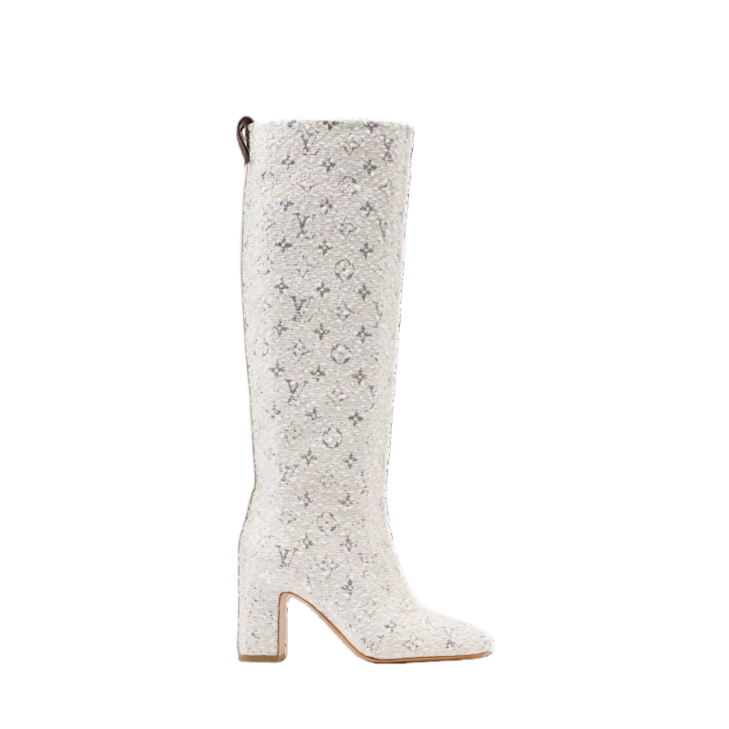 The Donna high boot is revisited in lustrous Monogram tweed for a glamorous, evening-ready look. Designed by Women's Artistic Director Nicolas Ghesquière, this emblematic model nods to the Seventies with its tubular shape and high block heel. A back loop in Monogram canvas finishes this sophisticated design.