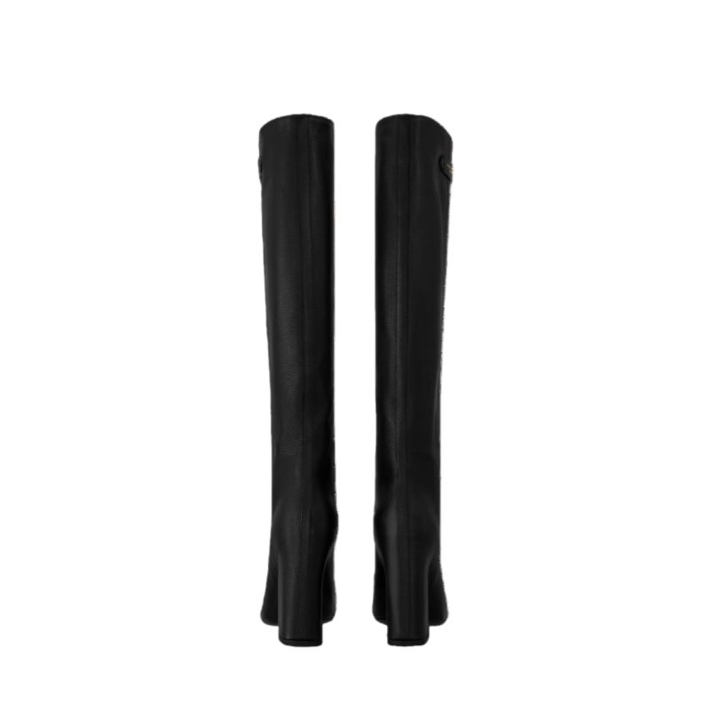 Designed by Women's Artistic Director Nicolas Ghesquière, the Donna high boot is made of grained calf leather. This model is distinguished by its sleek, tubular form, which references the classic styles of the Seventies, and its high block heel, which is also covered in leather. It is finished with a discreet label bearing the Louis Vuitton Paris signature.