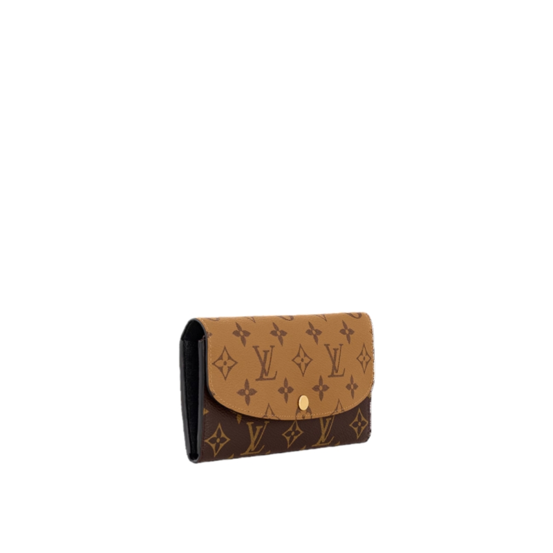 This edition of the Emilie wallet combines Monogram and Monogram Reverse canvas for a sophisticated, modern look. Distinguished by its sleek design and rounded flap, this wallet slips easily into most bags, and can even double as a clutch. Its neat interior offers many practical features, while there is an additional flat pocket at the back.