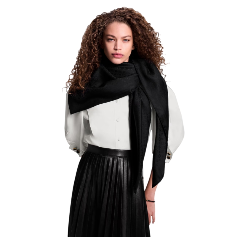 The Evermore shawl is cut in a smaller style to make it easier to tie. It features the classic Monogram pattern made using a woven jacquard technique and is finished with hand-rolled edges. The shawl is available in three colorways that are emblematic of the House.