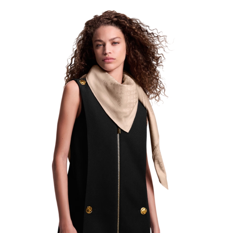 The Evermore shawl is updated for the season in new timeless colorways. This versatile design is crafted from a luxurious silk and wool blend, giving it a soft texture and an elegant drape. The miniature version of the Monogram pattern that decorates this piece elegantly catches the light with a soft shimmer.