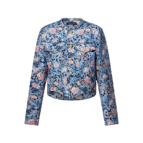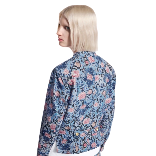 This jacket makes a chic statement in this season’s romantic floral vine jacquard. The casual style is reworked with a pointed hem at the front and a martingale at the back inspired by formal dress codes, while two flap pockets add a structured touch to the chest. Golden hardware completes the look with a polished detail.